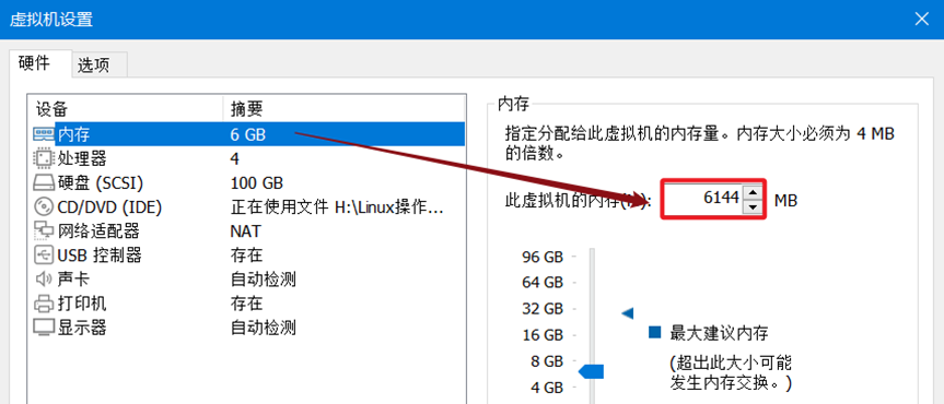 恢复完成后,设置node1服务器的内存大小为6G(官方建议最小不低于6G),否则会导致后期配置出现异常!!!